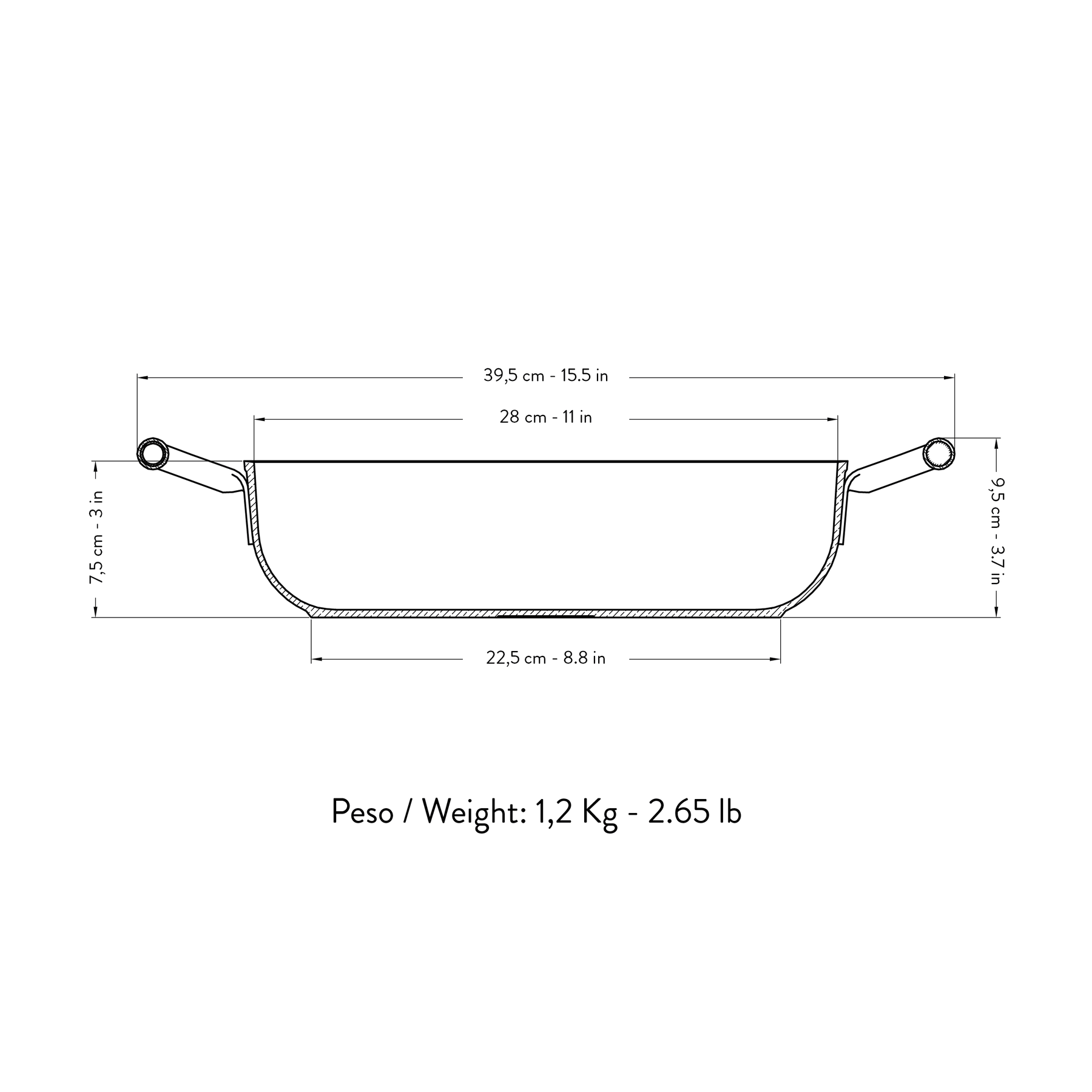 Internal dimensions: 22.5 cm (8.8 Inch)
