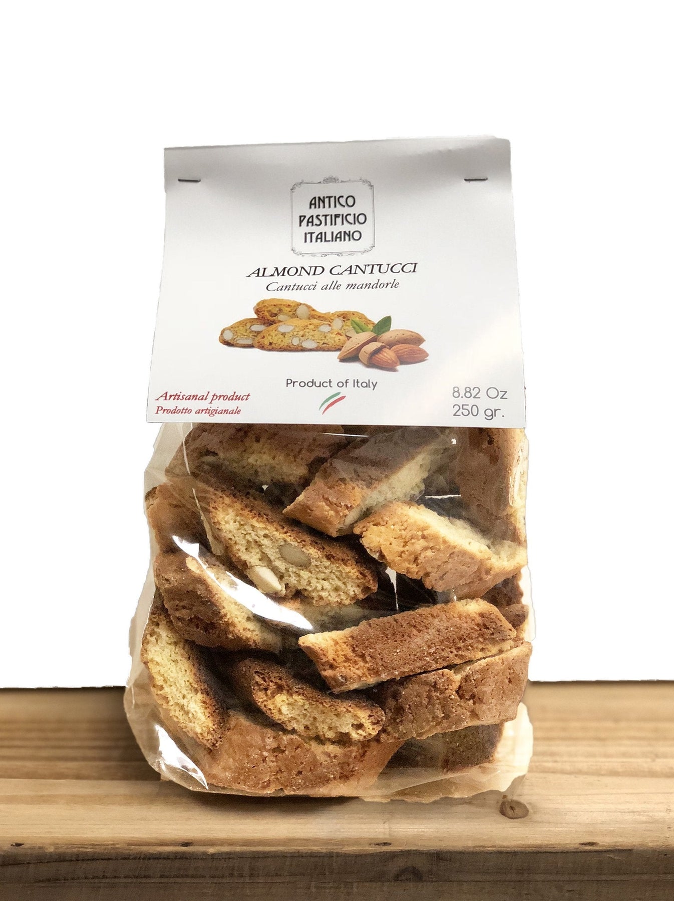 Authentic Tuscan Almond Cantucci biscotti from Antico Pastificio Italiano, featuring 23% real almonds and traditional twice-baked technique for signature crunchiness.