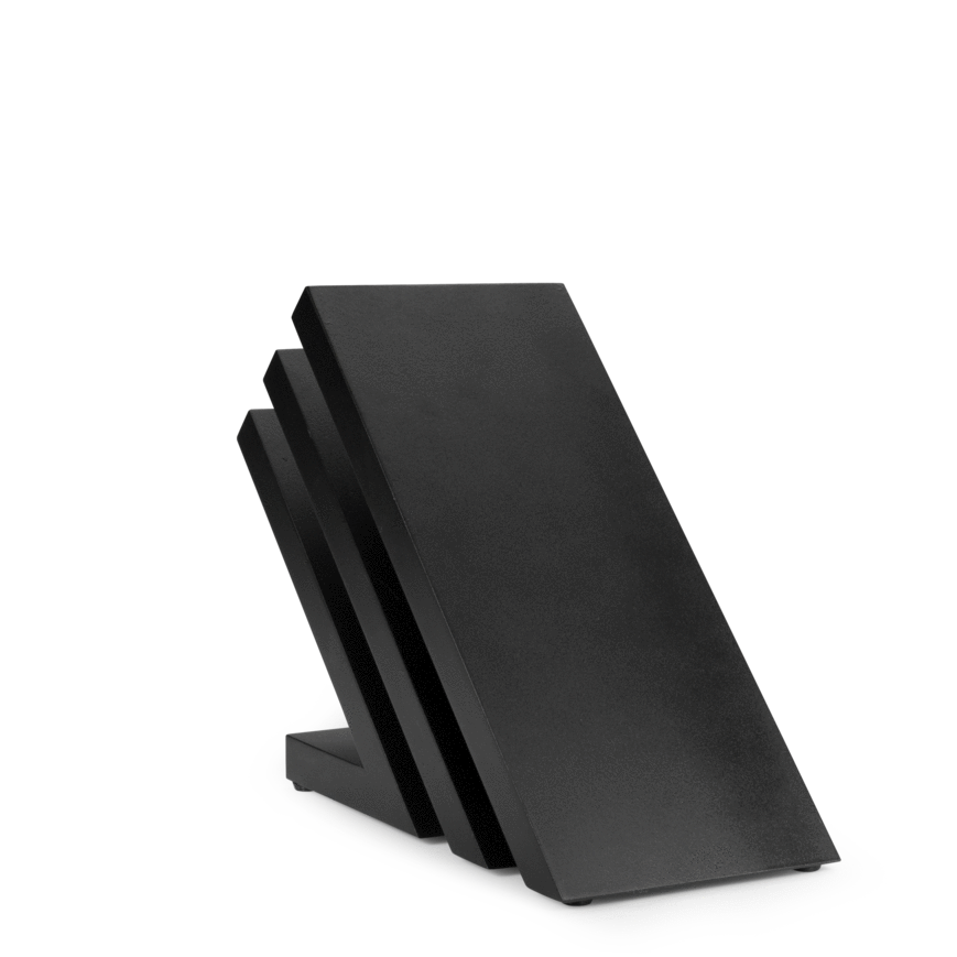 Universal magnetic knife block with 6 positions designed and handcrafted in Italy. In blockboard of beech, a wood known for its excellent performance in terms of wear resistance, hardness and stability, the block is equipped with exclusive invisible magnets placed inside the wood, for a perfect aesthetic result and a practical and immediate adherence than any stainless steel knife. Painted with colors that comply with the EN71 directive and are compatible with food contact. The careful study of the concept design makes this product a real jewel for any domestic and professional kitchen.