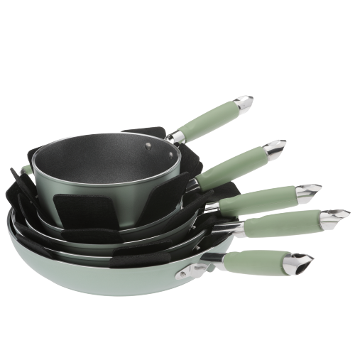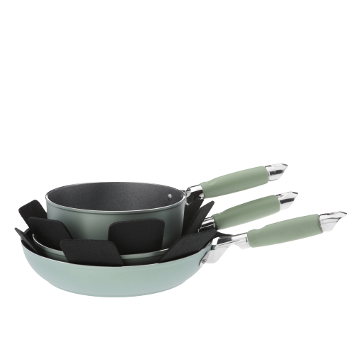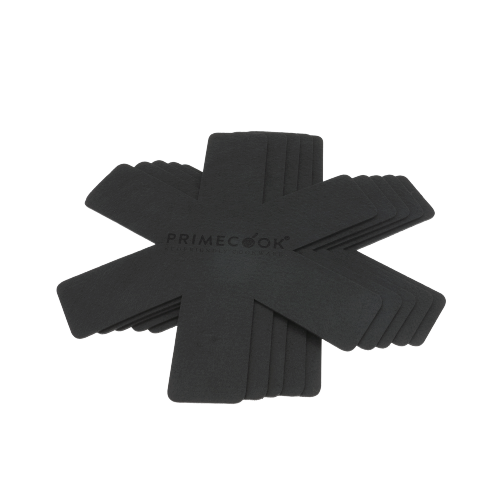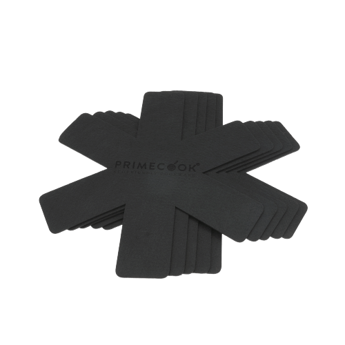 Very useful separators for pots and pans made of high quality non-slip and resistant non-woven fabric, they prevent friction and scratches, especially on non-stick cookware. Suitable for pans of any material are washable by hand or in the washing machine. The set consists of 5 pieces diameter 38 cm and can be cut out according to the size of the various pans.